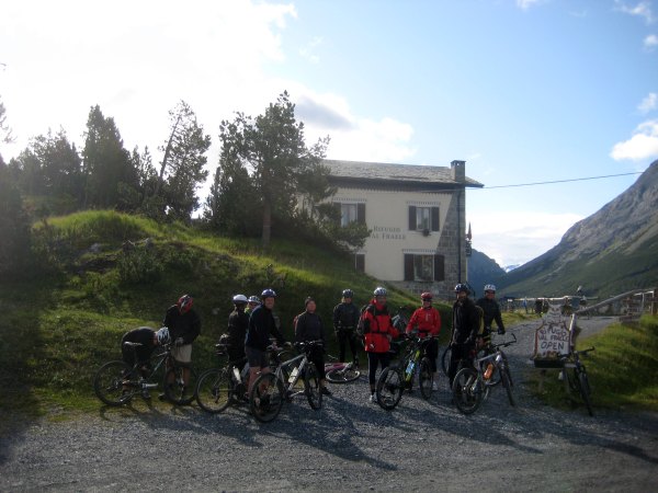 Wir sammeln uns vor dem Rifugio Fraele, gleich geht's hinauf zum