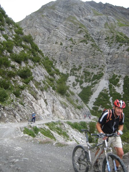 Schieben statt schinden, die steilste Passage in der Auffahrt