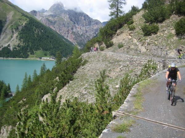 Auffahrt zum Passo Alpisella, Blick zurück zum Livigno See.